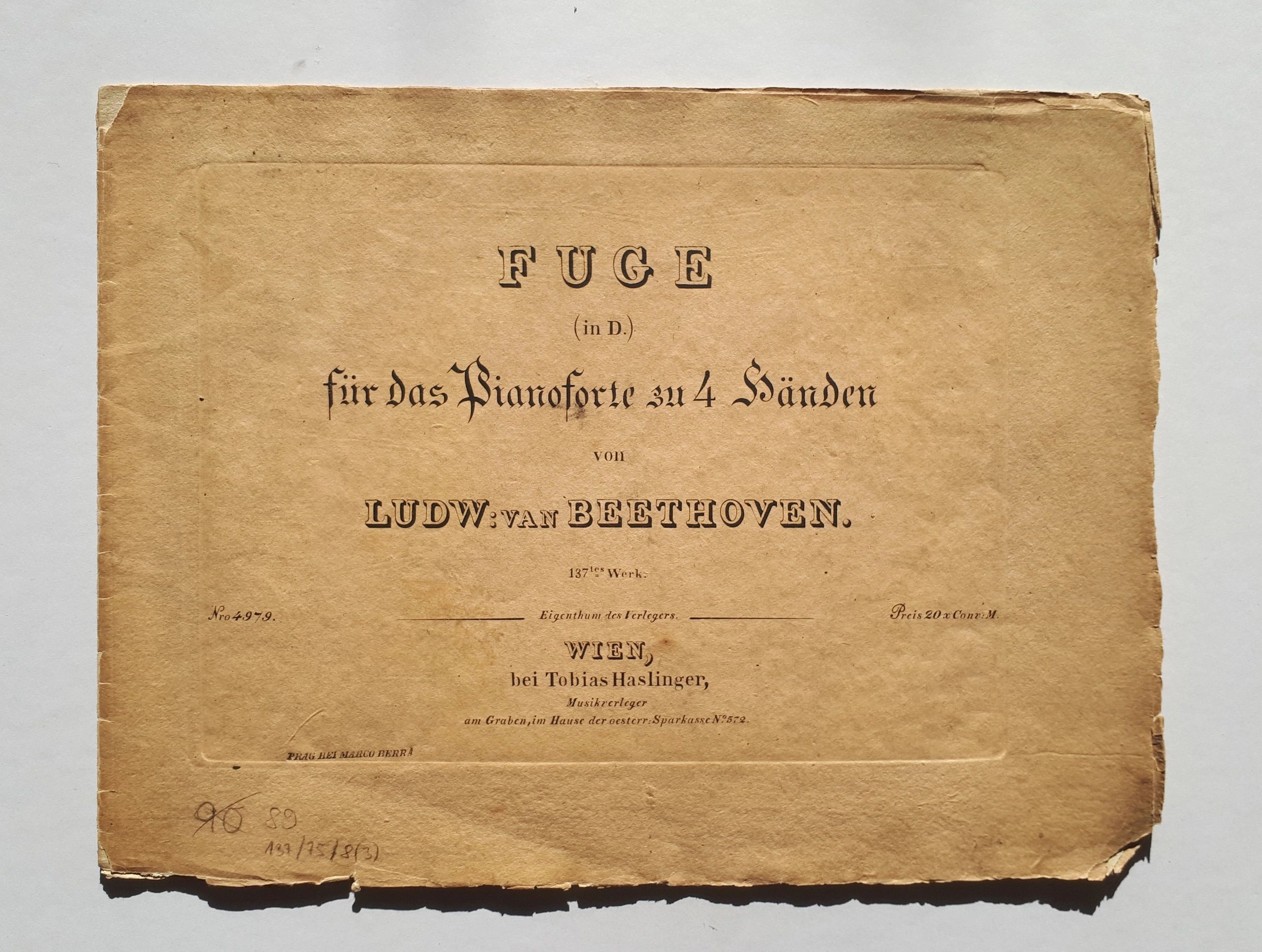 BEETHOVEN, Ludwig van. Fuge (in D.) für das Pianoforte zu 4 Händen. 137.tes Werk. PN 4979. Vienna, Tobias Haslinger, [1827].