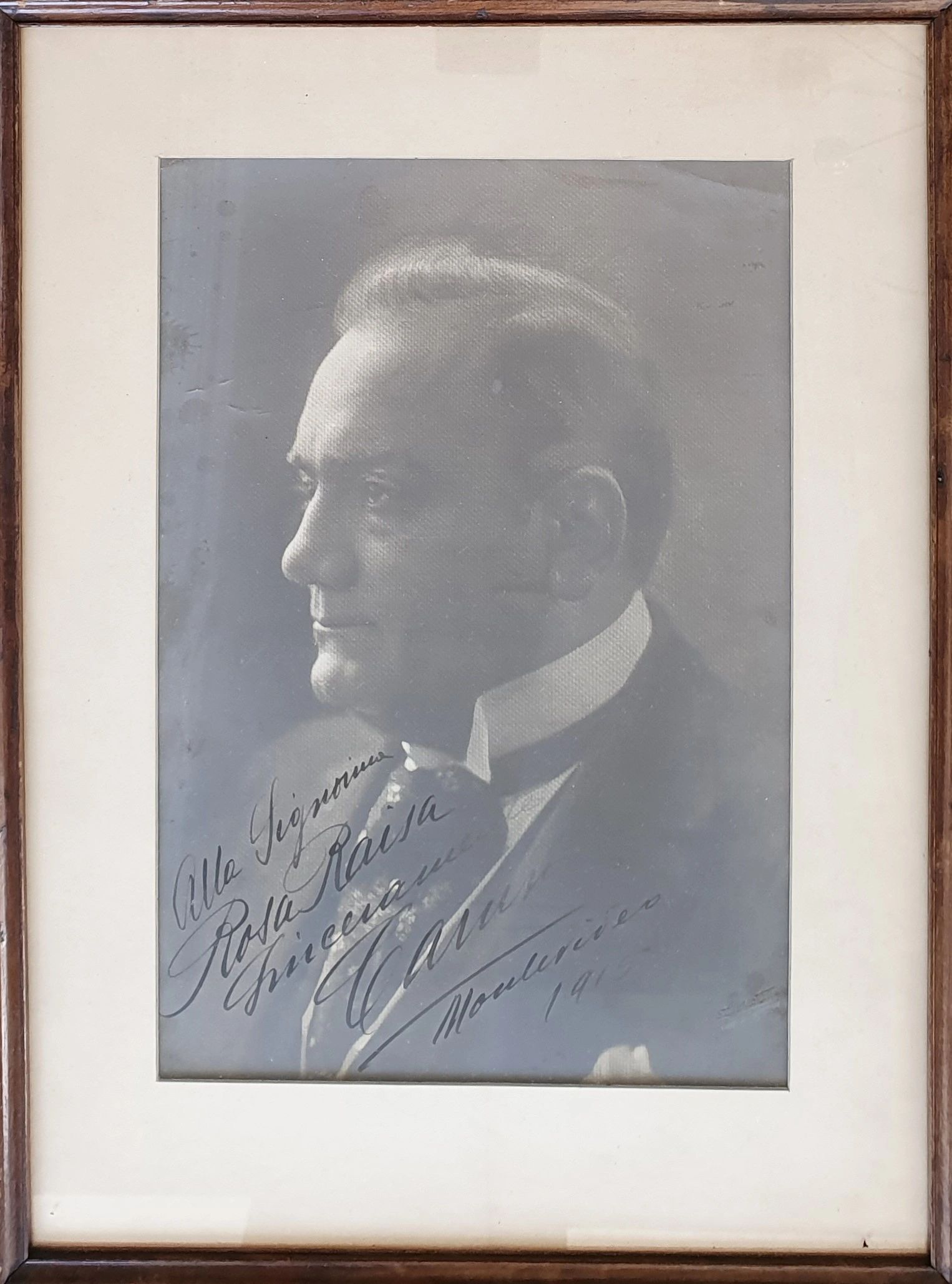 A fine and unusually large portrait (330 x 215 mm) of the Italian Tenor, with an autograph inscription to the famous Polish-born Russian-Jewish Soprano Rosa Raisa, dated from the year when the two were on Tournée in South America, performing Verdi’s Aida at Montevideo that time.