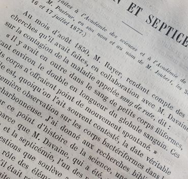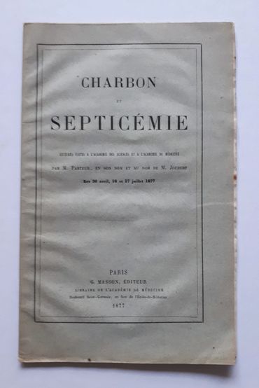 PASTEUR, Louis, and Jules François JOUBERT. Charbon et septicémie. Paris, G. Masson, 1877.